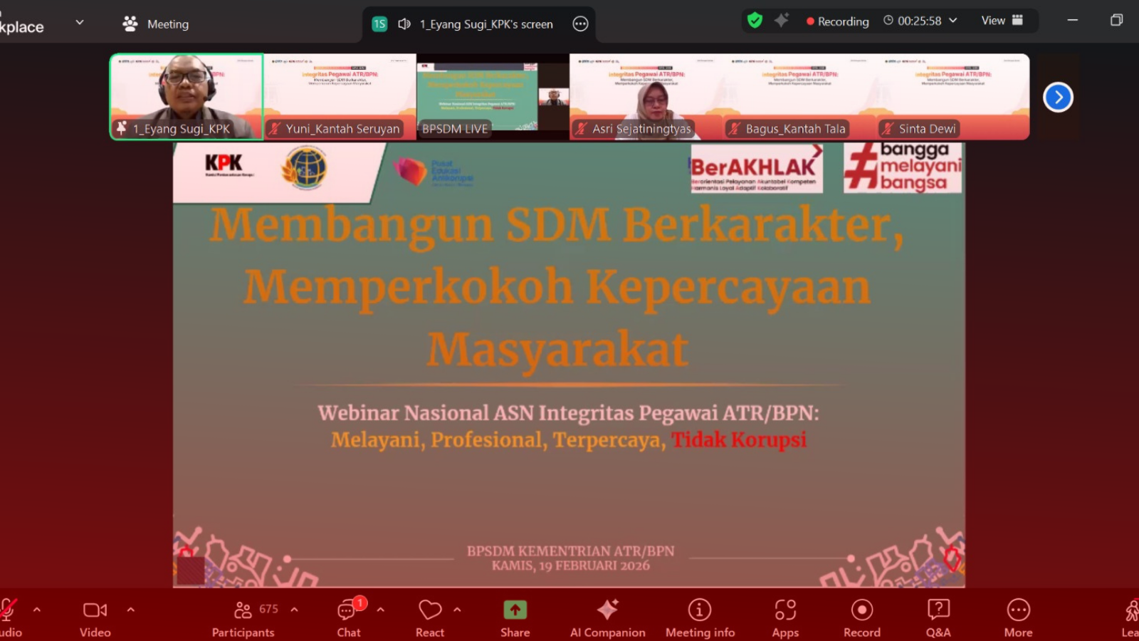 Kantor Pertanahan Kabupaten Seruyan Ikuti Webinar Integritas Pegawai ATR/BPN