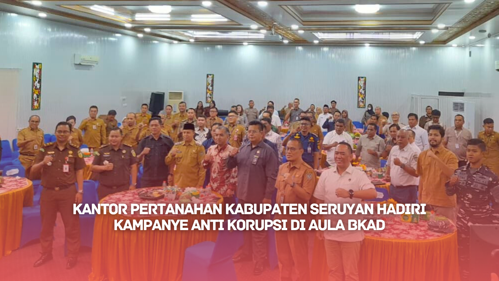 KUALA PEMBUANG – Kantor Pertanahan Kabupaten Seruyan menghadiri kegiatan Kampanye Anti Korupsi yang dilaksanakan di Aula Badan Keuangan dan Aset Daerah (BKAD) Kabupaten Seruyan (Selasa, 30 September 2025). Kegiatan ini diikuti oleh perwakilan instansi pemerintah daerah, lembaga teknis, serta unsur pemangku kepentingan lainnya yang memiliki peran penting dalam upaya bersama mewujudkan penyelenggaraan pemerintahan yang bersih, transparan, dan berintegritas.