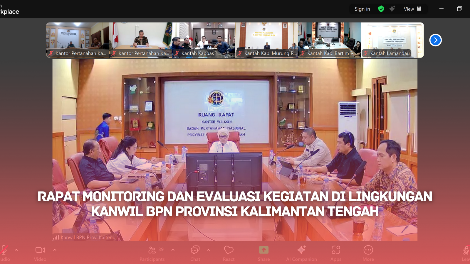 KUALA PEMBUANG – Kantor Pertanahan Kabupaten Seruyan mengikuti Rapat Monitoring dan Evaluasi (Monev) Kegiatan yang diselenggarakan oleh Kantor Wilayah Badan Pertanahan Nasional Provinsi Kalimantan Tengah pada Kamis, 18 September 2025. Kegiatan yang dilaksanakan secara daring ini dipimpin langsung oleh Kepala Kantor Wilayah BPN Provinsi Kalimantan Tengah, Ibu Ir. Fitriyani Hasibuan, Dipl.Ph., M.M.