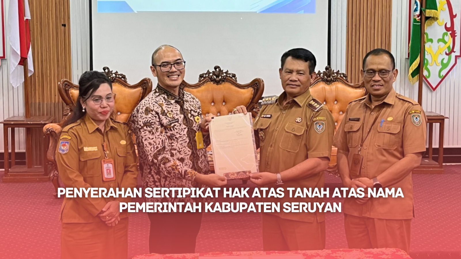 KUALA PEMBUANG – Kantor Pertanahan Kabupaten Seruyan melaksanakan kegiatan Penyerahan Sertipikat Hak Atas Tanah atas nama Pemerintah Kabupaten Seruyan, Selasa, 2 September 2025. Kegiatan ini merupakan bagian dari upaya percepatan pensertipikatan tanah aset pemerintah daerah guna memberikan kepastian hukum dan mendukung optimalisasi pemanfaatan aset daerah.