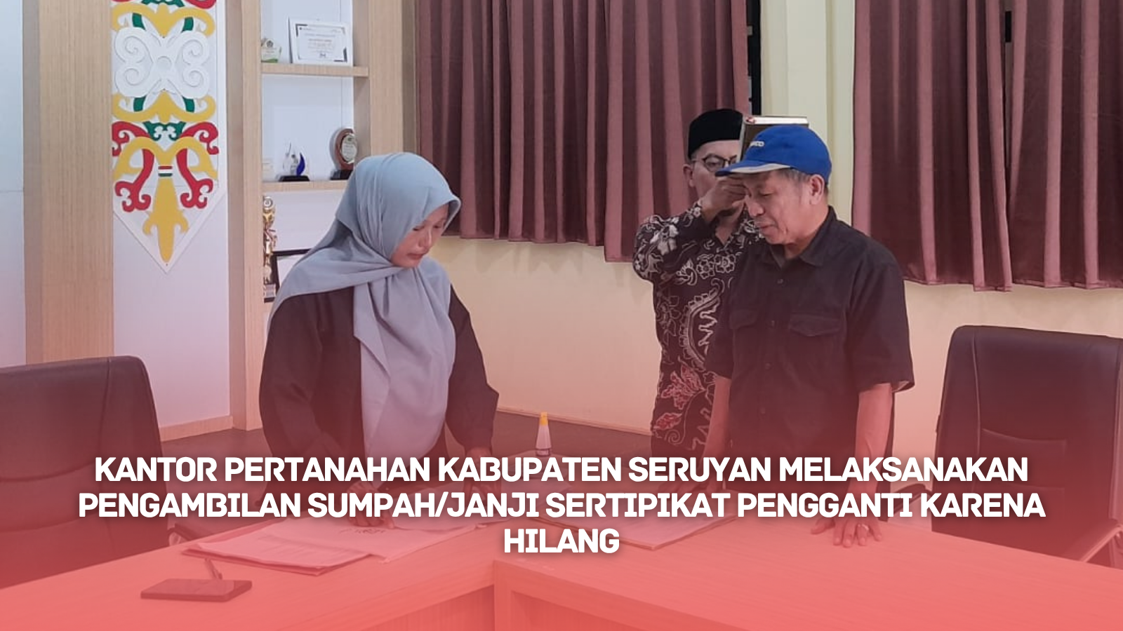 KUALA PEMBUANG – Kantor Pertanahan Kabupaten Seruyan melaksanakan kegiatan Pengambilan Sumpah/Janji Sertipikat Pengganti Karena Hilang yang diikuti oleh para pemohon penerbitan sertipikat pengganti atas tanah yang kehilangan dokumen aslinya pada Kamis, 9 Oktober 2025. Kegiatan ini menjadi bagian dari tahapan administratif yang wajib dilaksanakan sebelum diterbitkannya sertipikat pengganti.