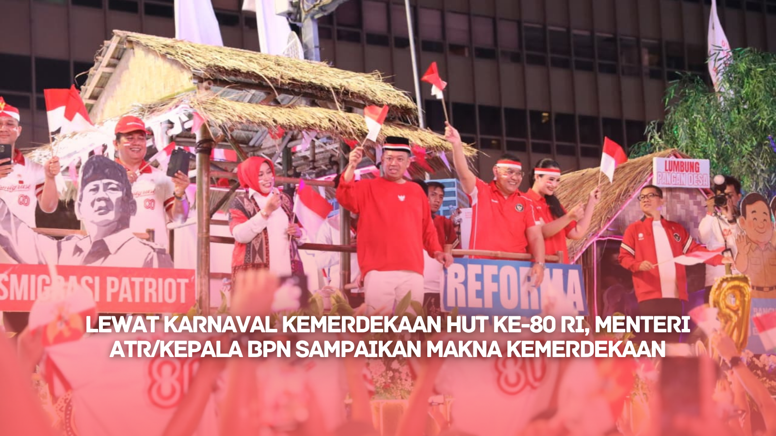 “Kemerdekaan adalah membebaskan rakyat dari belenggu penjajahan. Mari kita jaga negara kita, jaga kedaulatan negara kita, itulah makna hakiki dari kemerdekaan, merdeka!” ujar Menteri Nusron saat diwawancara di atas kendaraan hias Kementerian ATR/BPN.