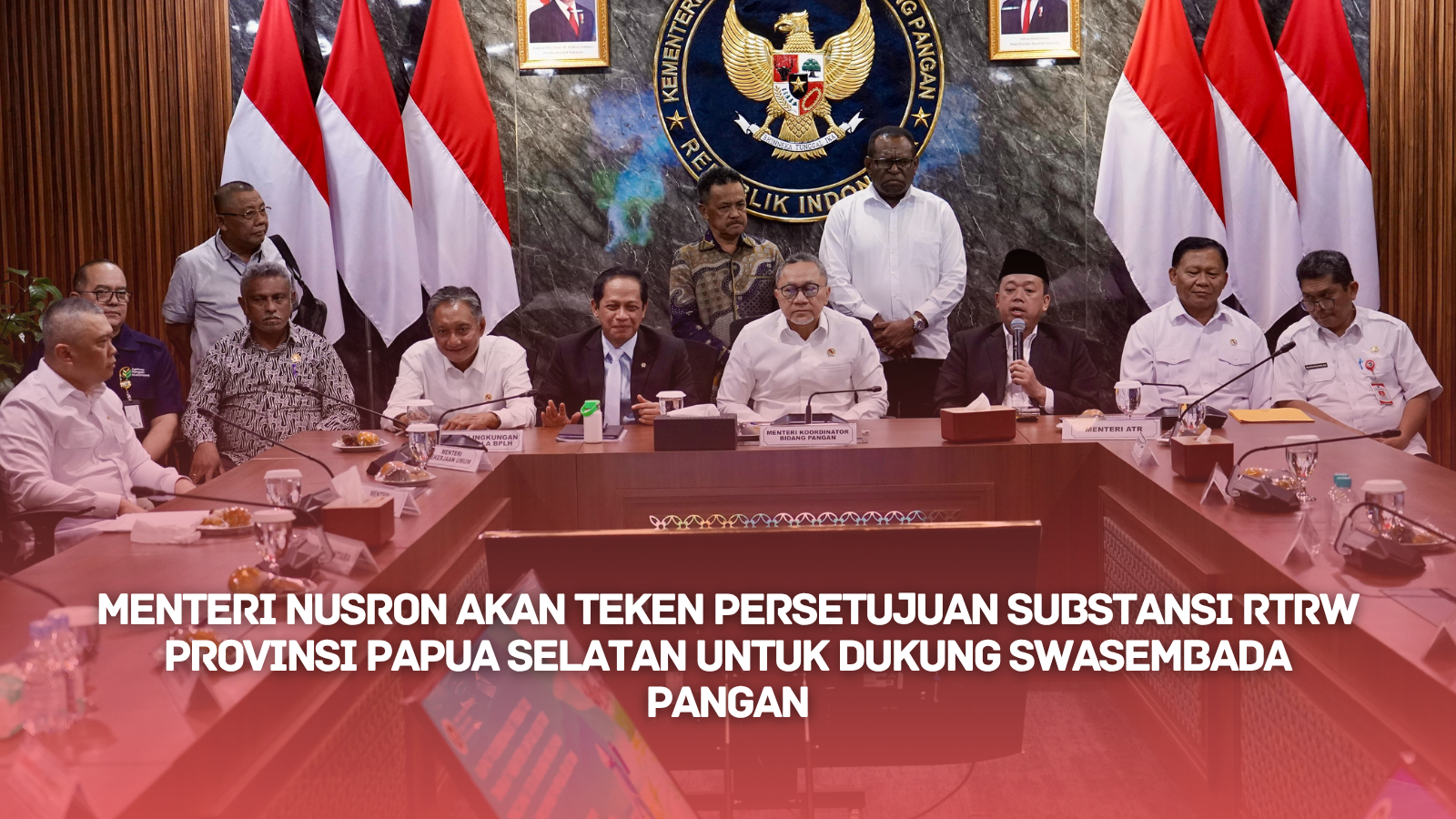 JAKARTA – Menteri Agraria dan Tata Ruang/Kepala Badan Pertanahan Nasional (ATR/BPN), Nusron Wahid, menekankan pentingnya Rencana Tata Ruang Wilayah (RTRW) sebagai dasar hukum dalam pembangunan daerah, terutama di Provinsi Papua Selatan. Ia menyatakan, akan segera menandatangani Persetujuan Substansi RTRW Provinsi Papua Selatan untuk mendukung program swasembada pangan yang dicanangkan Presiden Republik Indonesia, Prabowo Subianto.